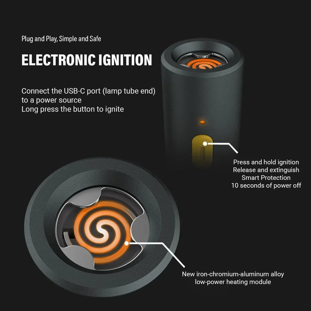 Always Ready — No batteries to charge. Power the lamp or ignition from any USB-C power source or power bank.