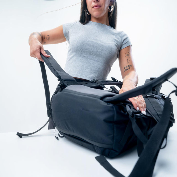 The world travel backpack that thinks like a suitcase but carries like a dream.