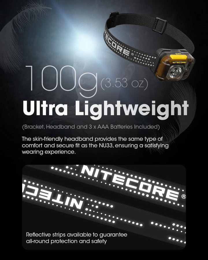 Designed to support the rigorous needs of marathon runners, the HA13 features versatile power options—compatible with both 3x AAA batteries and the Nitecore HLB1500 Li-ion Battery Pack (not included).