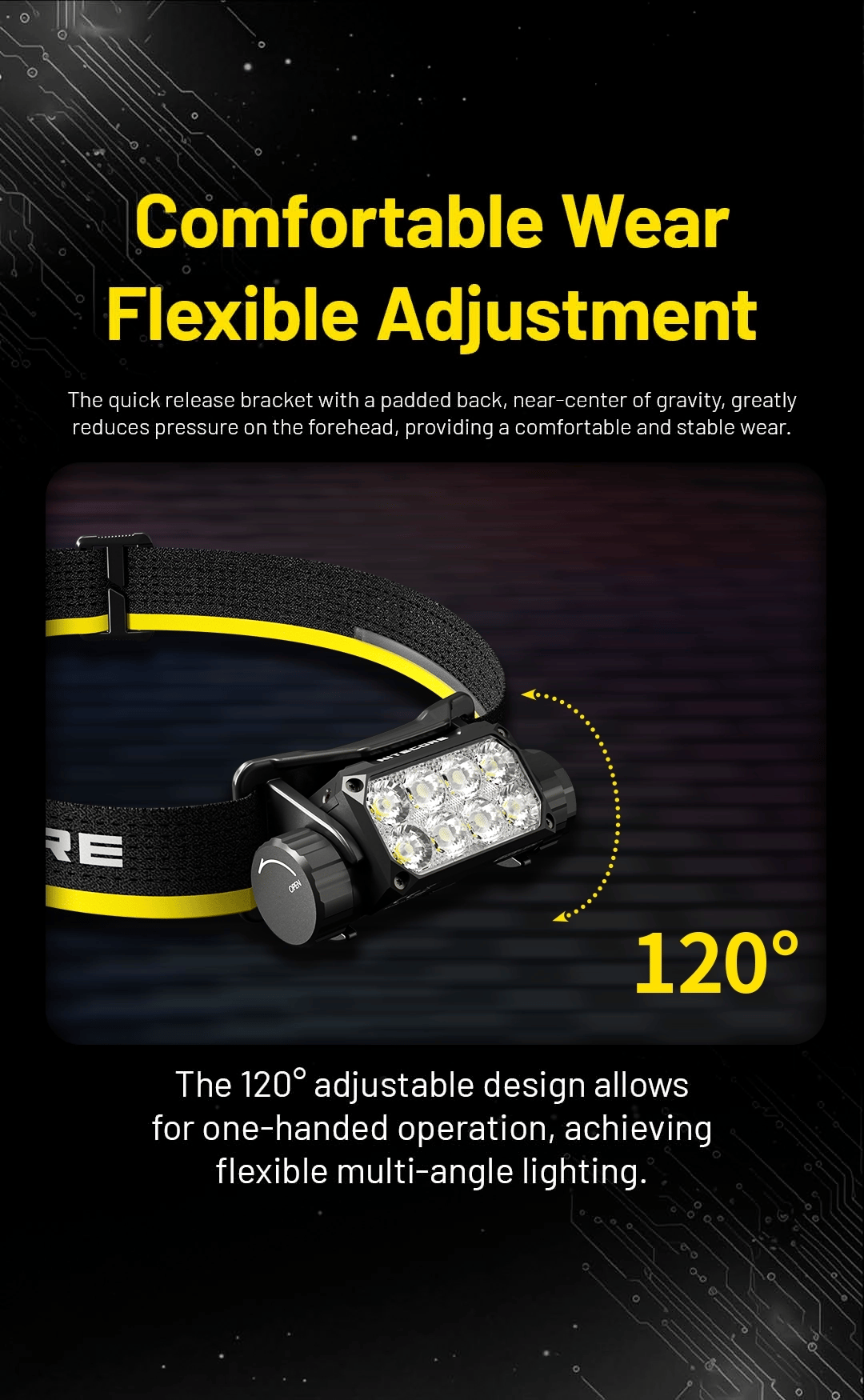 REVOLUTIONARY 3-PATTERN BEAM CONTROL - Unlike any other Nitecore headlamp, the HC75 UHE offers three distinct beam patterns: Mixed Light for general use, Spotlight for search/rescue, and Floodlight for close-range work. The stepless adjustment allows precise control over the beam ratio, while the memory function recalls your preferred setting when reactivated.