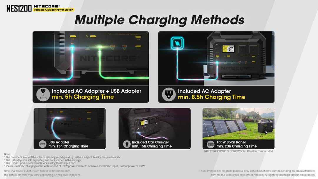 SOLAR READY - Easy charging of the NES1200 from the sun can be done with our portable FSP100W solar panel while away from the grid for extensive periods, making this a truly portable power solution.