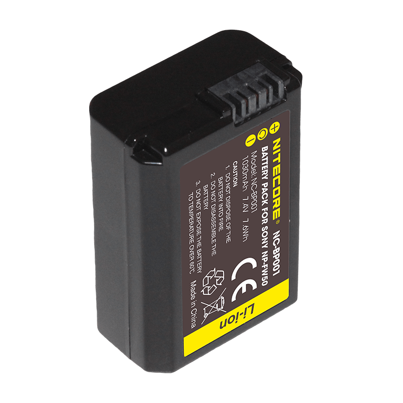 - 1x NP-FW50 (1030mAh) Battery Pack for Sony (NC-BP001)