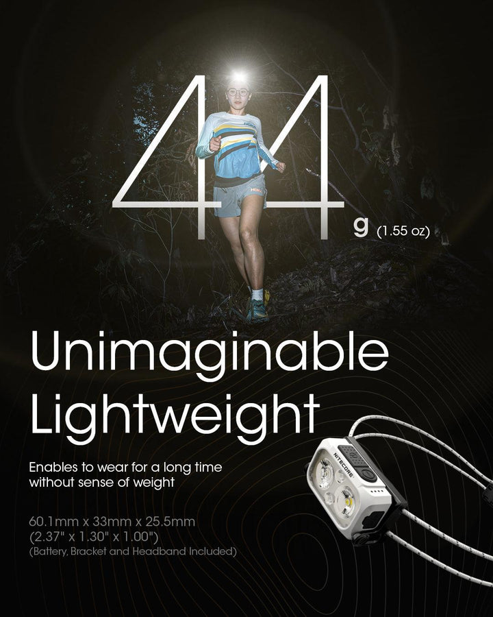 The Nitecore NU21, the lightest headlamp on the market at just 44 grams, offers unparalleled comfort and efficiency for your night-time escapades.
