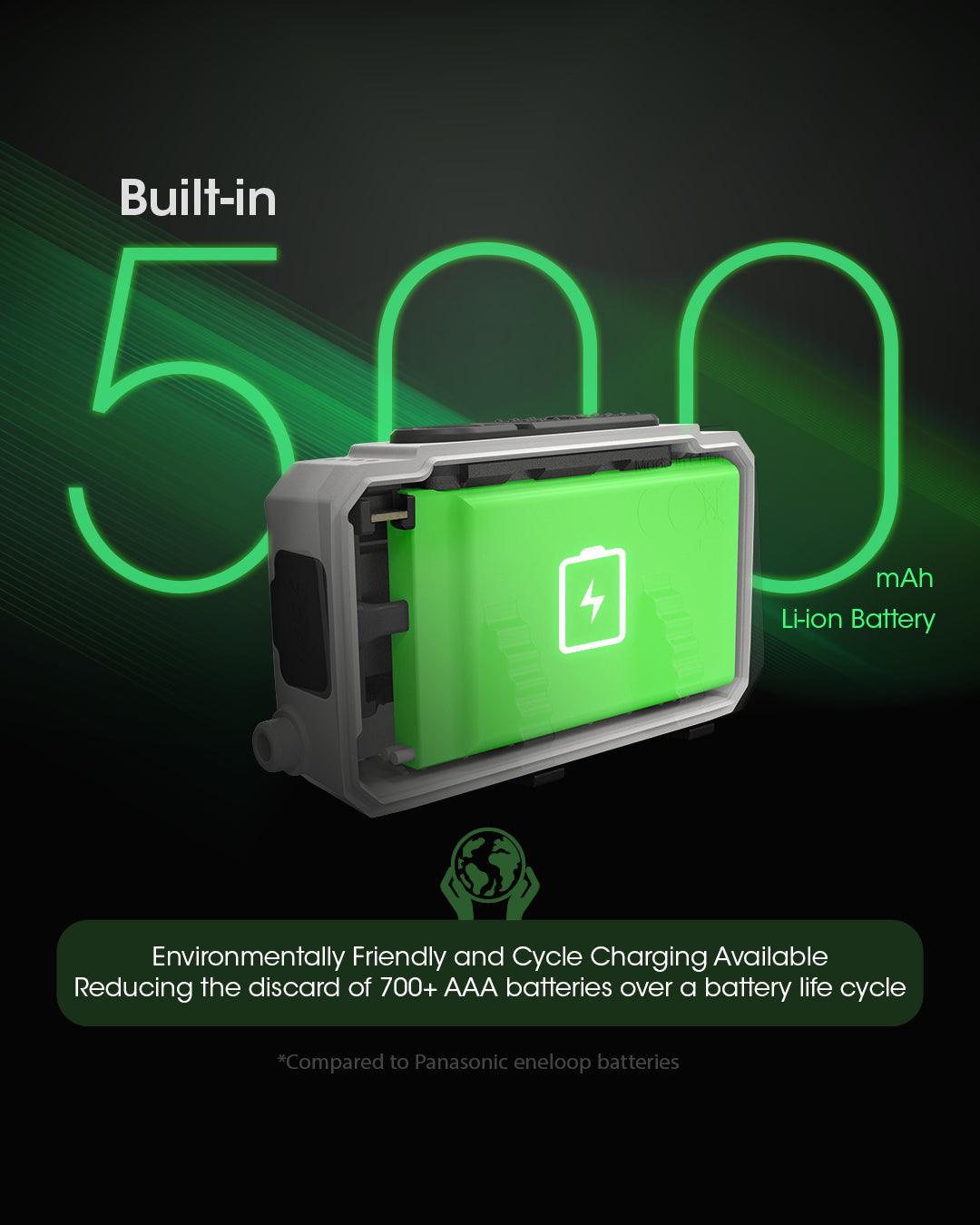 Integrated Rechargeable Battery - No more fumbling with batteries! It takes just 90 minutes to fully charge via USB-C, and you can use it while it’s charging.