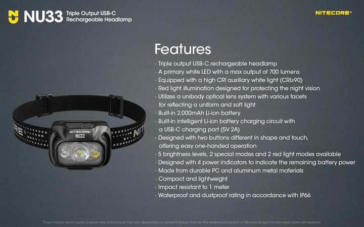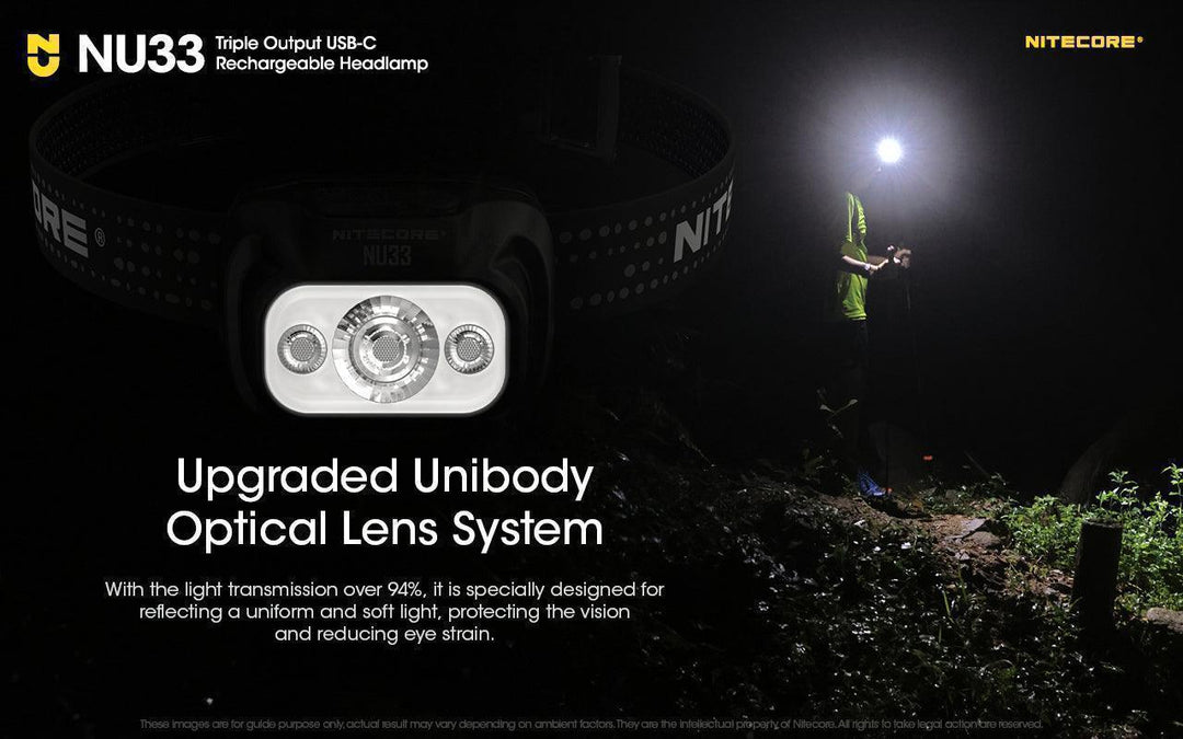 15% smaller than NU32, the lightweight NU33 takes the center stage as Nitecore's new all-rounder headlamp for night running, outdoor adventures, or camping.