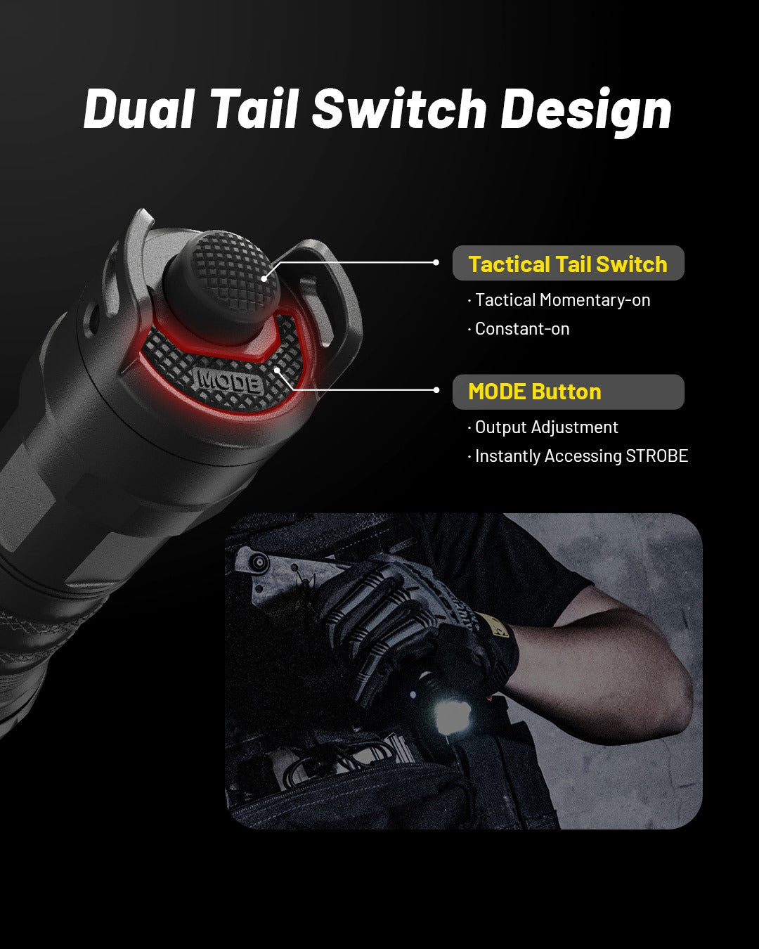 - Patented Strobe Ready Tailcap Switch