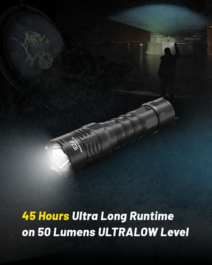SUPER LONG RUNTIME - 4 hours of runtime in at 800 lumens gets all of your tasks done with time to spare. The P23i runs up to 45 hours on 50 lumens, making it a fantastic emergency light.