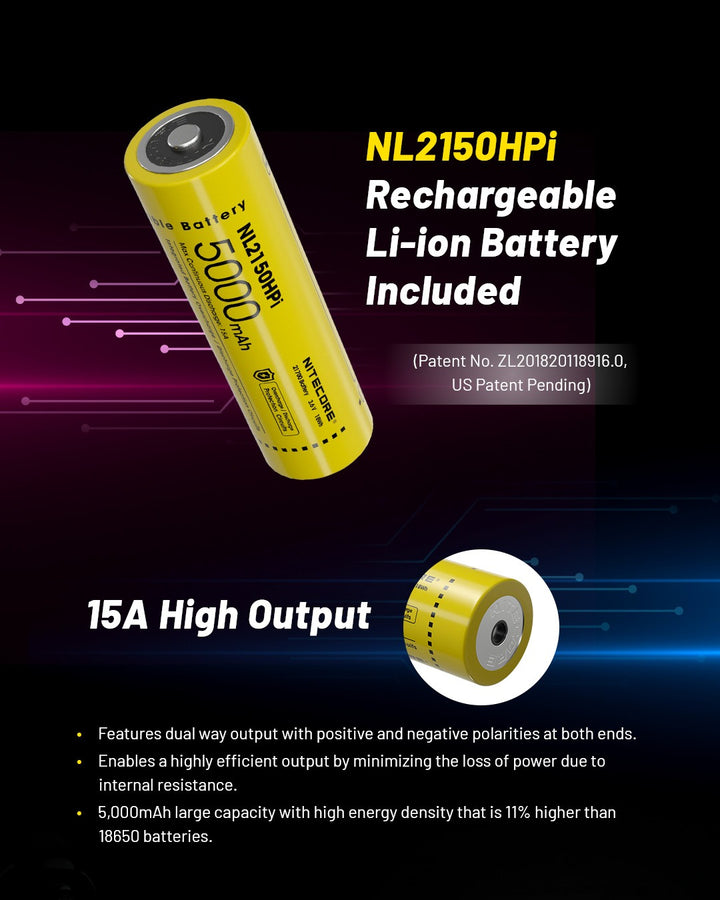 - 1x Nitecore NL2150HPi 5000mAh Li-ion Battery