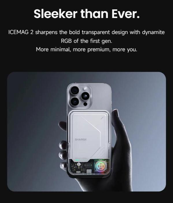 Why is there a cooling fan? Overheating with magnetic power banks when charging is a common issue. The fan aims to address this problem while maintaining SHARGE's signature transparent aesthetics. Is the fan noisy? The fan operates at a whisper-quiet 23dB for minimal noise disruption. How much magnetic force is in the wireless module? The wireless module offers approx. 700g of magnetic force. Does ICEMAG 2 support cable charging Yes. ICEMAG 2 supports 30W max cable charging. What is "pass-through charging" It means you can charge the power bank while it also powers up devices at the same time. Can it charge 2 devices at the same time? Yes. Simultaneous charging of two devices is supported. Can it wirelessly charge non-apple devices? Yes. ICEMAG can wirelessly charge non-Apple smartphones that are compatible with Qi charging standards. For magnetic attachment, a magnetic phone case is required. When wirelessly charging non-apple smartphones, is there any difference in charging speed? Charging speed may vary when wirelessly charging different devices, as speed is dependent on the device. ICEMAG supports both MagSafe and Qi charging for optimal speeds. |