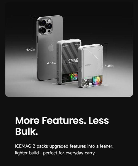 Snap on Anywhere. Easy. - The SHARGE ICEMAG MagSafe Battery Pack effortlessly snaps onto your device, offering a strong magnetic attachment. It's travel-ready and pocket-sized, making it your perfect companion on the go.