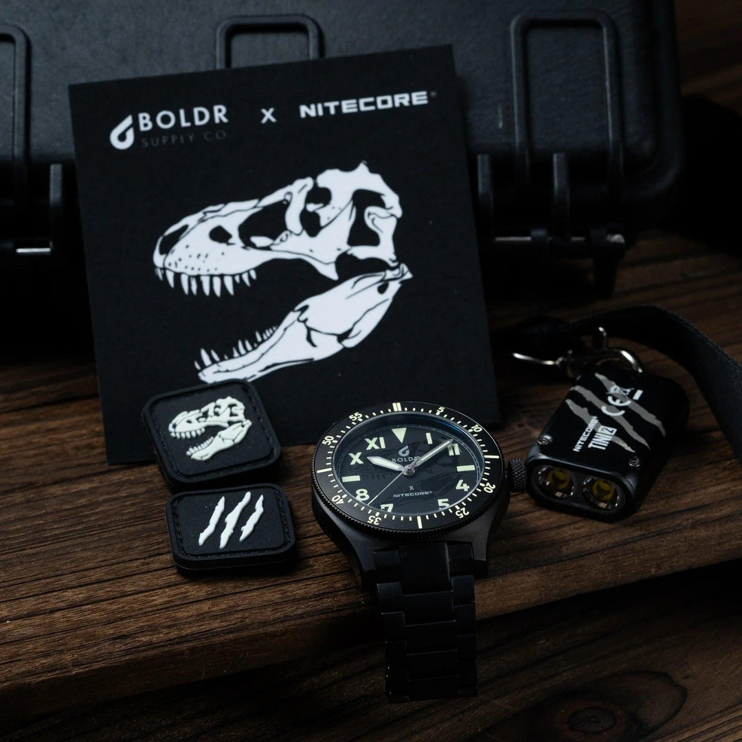 We don't make watches, but are proud to work with folks who do! Following the sold out success of the first KRAKEN collection we're are back together to create a special T-Rex themed Safari field watch.