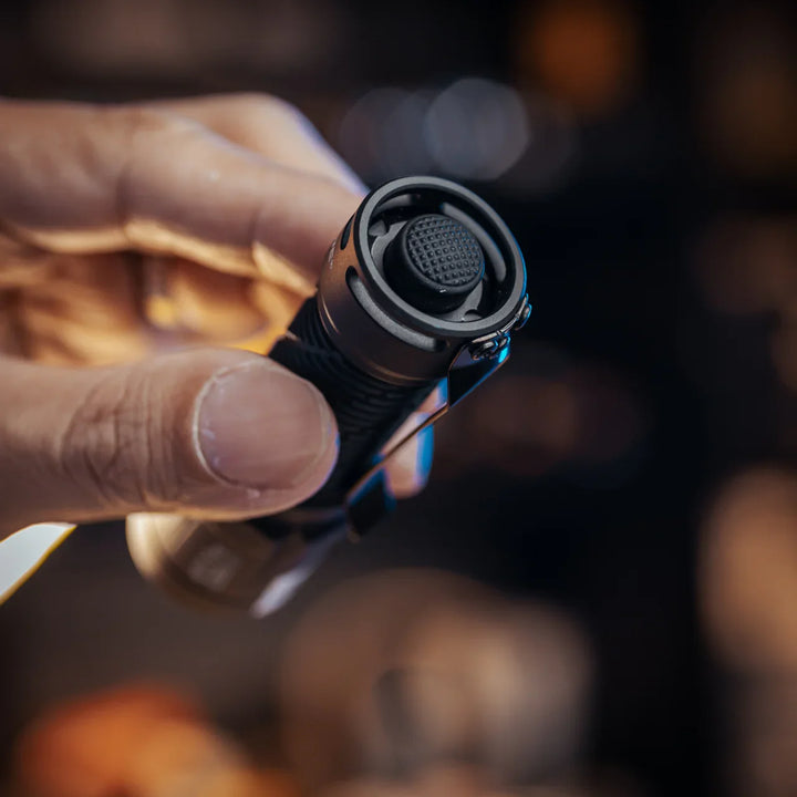 COMPACT CONVENIENCE - Measuring just 88mm (3.46") and weighing a mere 53g (1.87 oz) without the battery, the MT1C Pro fits comfortably in your hand and can easily slip into your pocket or backpack. The rim guard around the tail button prevents accidental activation and allows the flashlight to stand on its end.