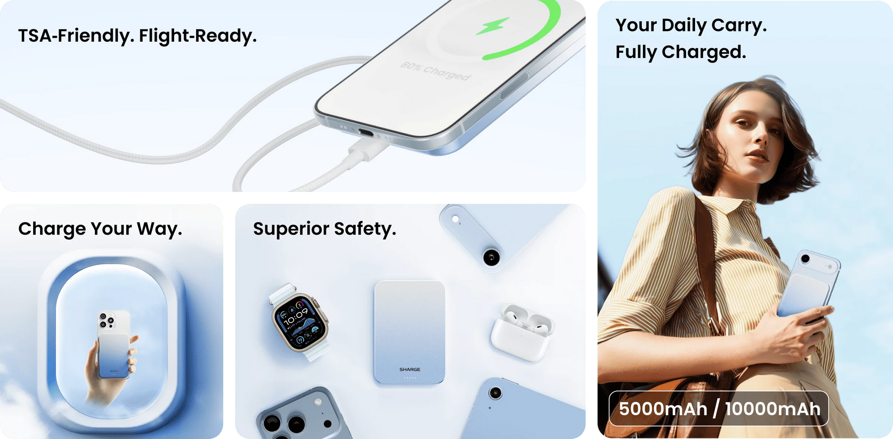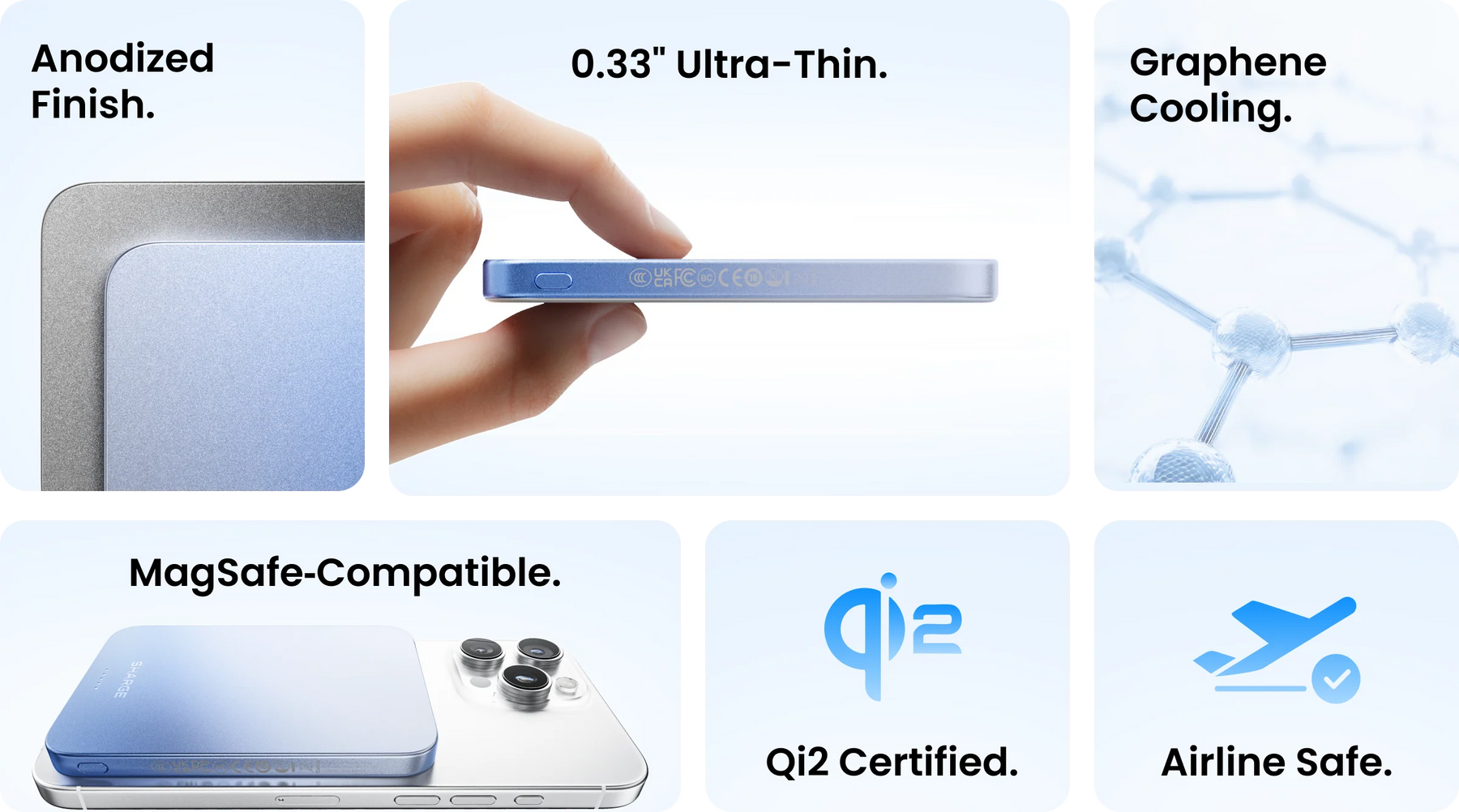 AeroMag 5K (125g) - For daily top-ups and maximum portability. At just 8.5mm thin, it fits in any pocket and provides enough power for a full day's backup. Perfect for commuters who value ultra-slim carry.