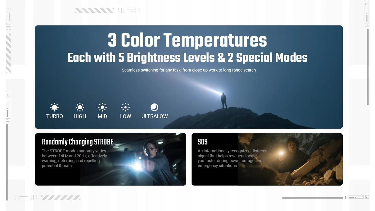 EMERGENCY MODES WHEN IT MATTERS - Dedicated STROBE with randomized 16-20Hz frequency provides effective signaling and deterrent capability. International SOS mode helps rescuers locate you during power outages or emergency situations.