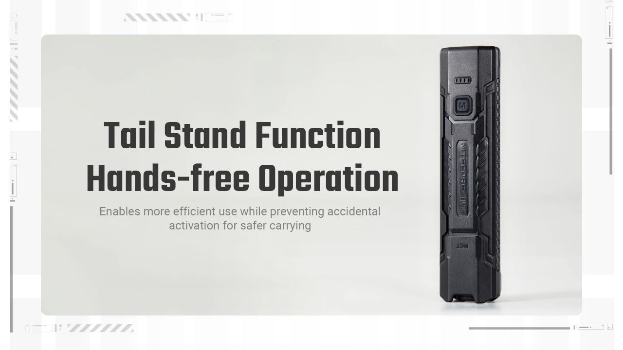 Full-size lighting performance in a 70-gram polycarbonate body that feels like nothing in your pocket.