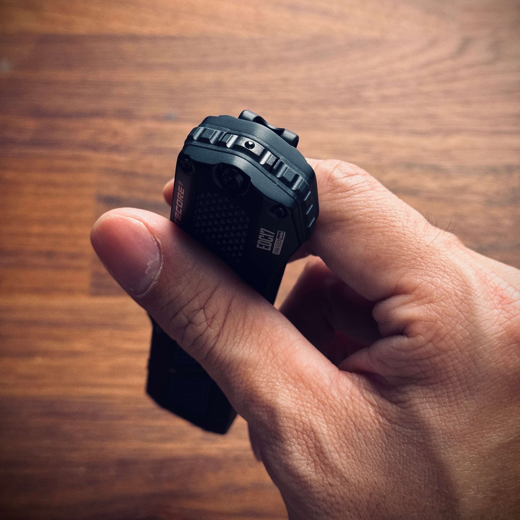 The EDC17 consolidates what would normally require carrying three separate tools: a high-output flashlight, professional UV light, and precision laser pointer. One device, one charging cable, one thing to grab.