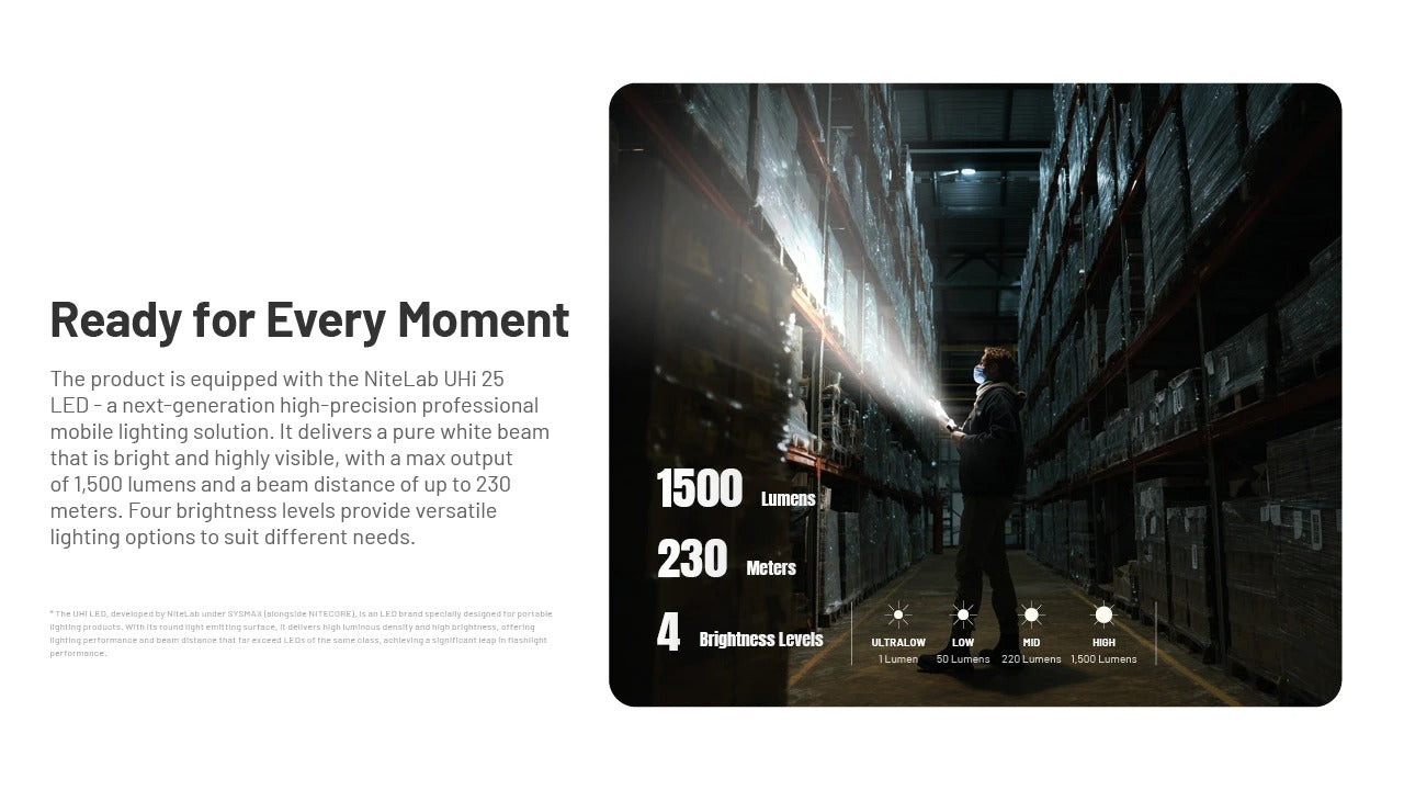 - 4 white light levels plus ULTRALOW mode for extended runtime
