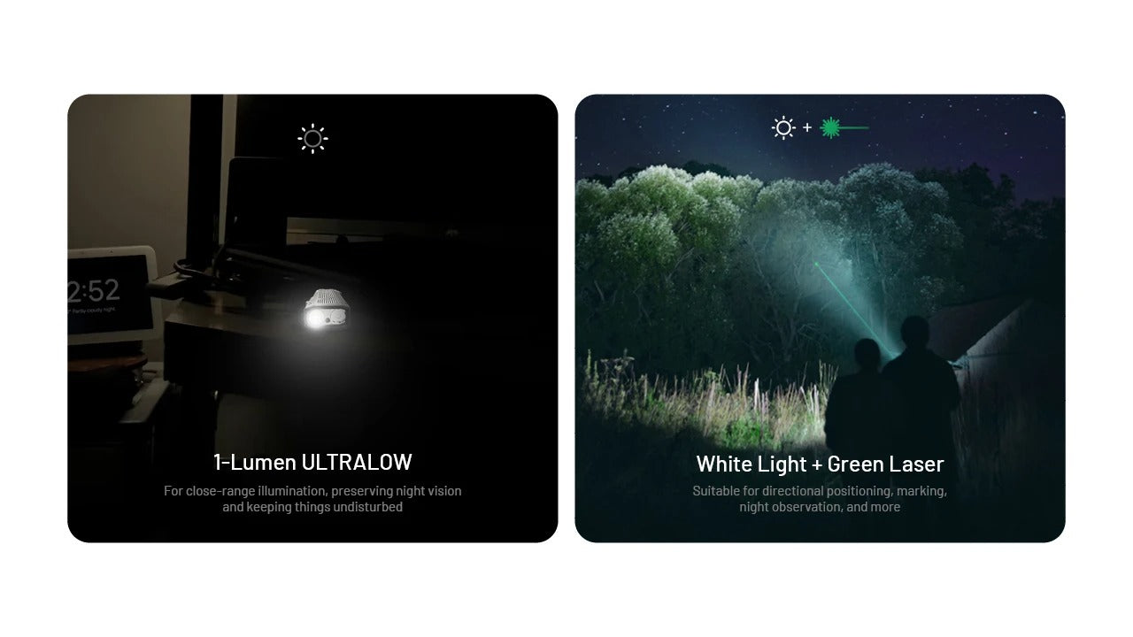 SMART ULTRALOW ACTIVATION - With the light off, hold the M button and slide forward to activate 1 lumen mode. This prevents accidentally blinding yourself when checking something in the dark. At ULTRALOW, you get 260 hours of runtime from a single charge. The built-in battery charges in 90 minutes via USB-C.