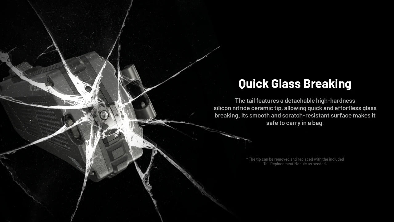 The detachable ceramic glass-breaking tip can shatter vehicle windows during emergencies. Combined with IPX7 waterproofing, this light works when critical situations demand it.