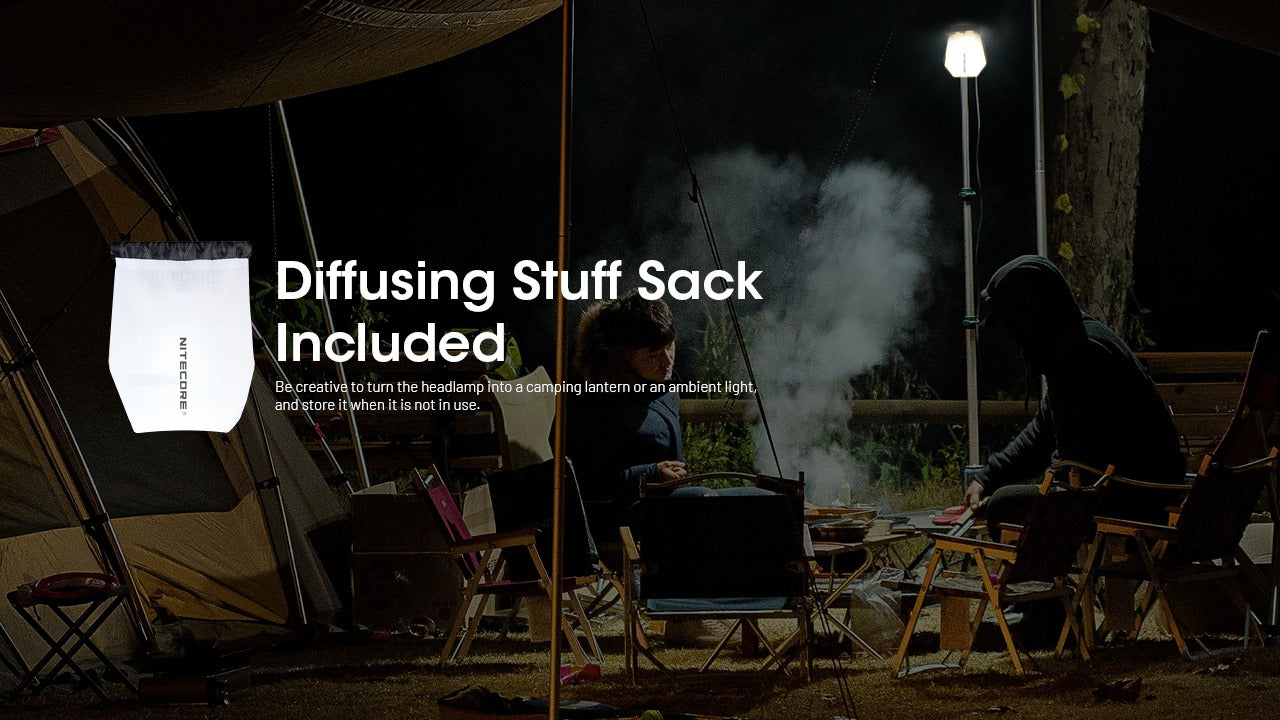 - 1x Diffusing Stuff Sack - Instantly converts your directional headlamp into an ambient tent or campsite light