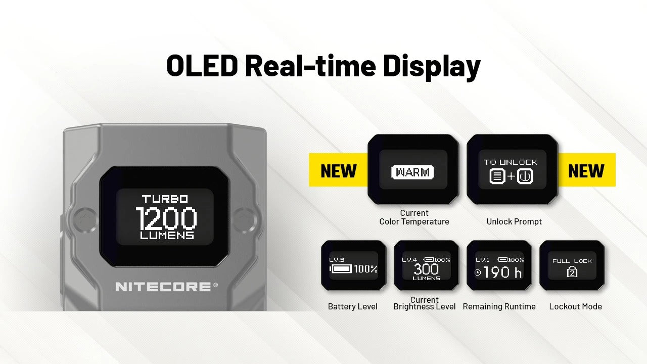 KNOW EXACTLY WHAT YOU'RE WORKING WITH - The OLED screen tells you brightness level, how much time you have left, and battery percentage. When you're five miles into a hike at sunset, you can check and see you've got three hours of light for getting back.